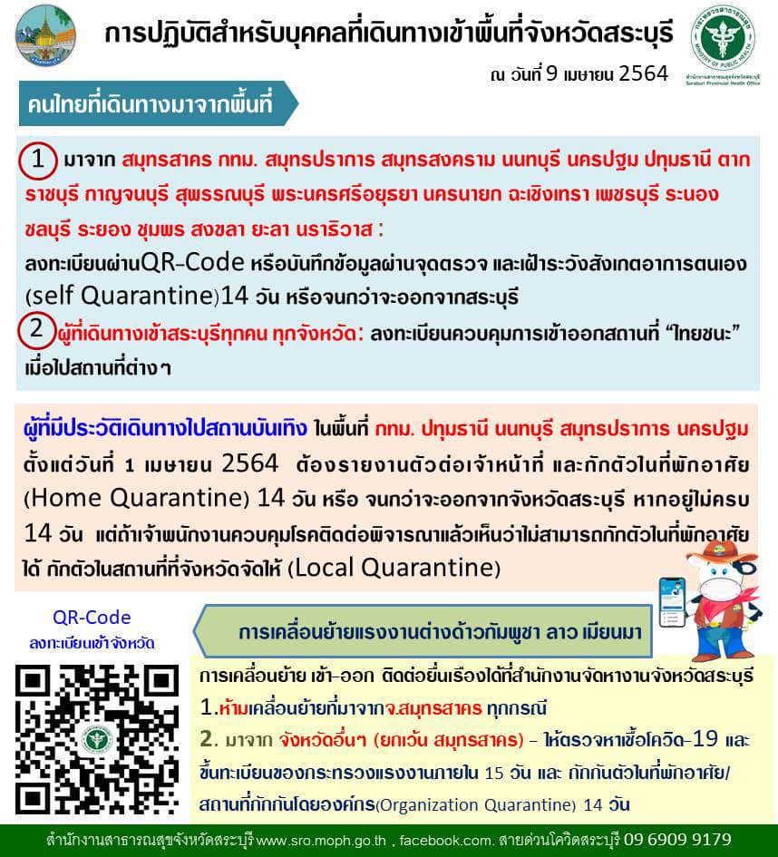 มาตรการการปฏิบัติตัวของผู้เดินทางมาจากต่างจังหวัด กรณีโรคติดเชื้อไวรัสโคโรน่า 2019 จ.สระบุรี